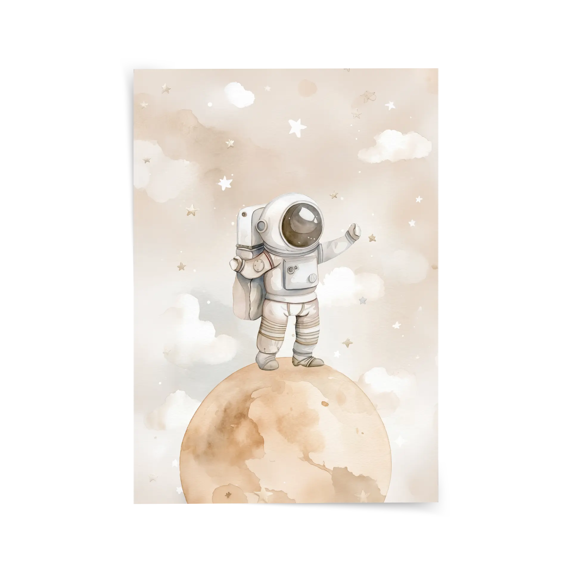 Sevimli tasarımı ve pastel renkler ile hazırlanan bu tasarım, çocuk odalarına ilham verici bir uzay keşfi katar.