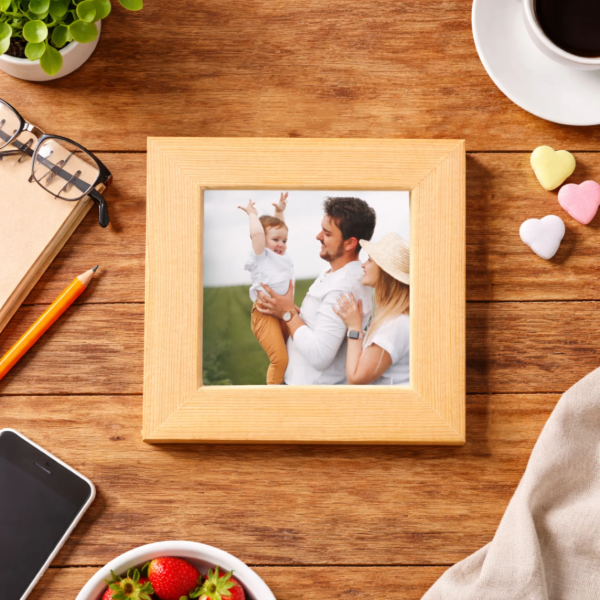 Doğal çam ağacından ürettiğimiz 9,5 x 9,5 cm ölçülerindeki bu kişiye özel fotoğraf baskılı magnet, anılarınızı sıcak ve estetik bir şekilde sergilemenizi sağlar.