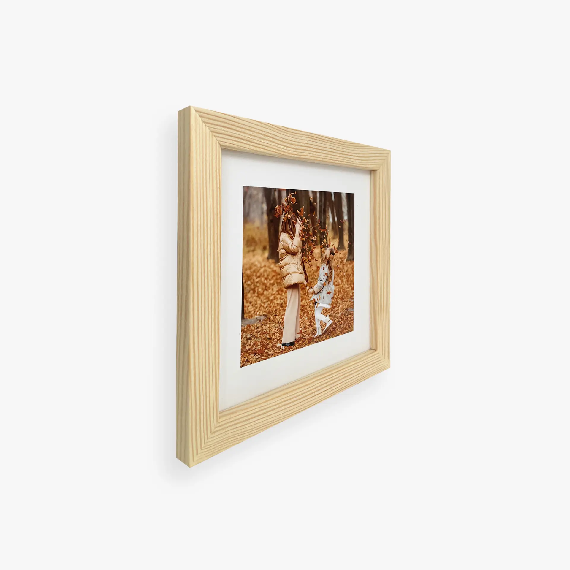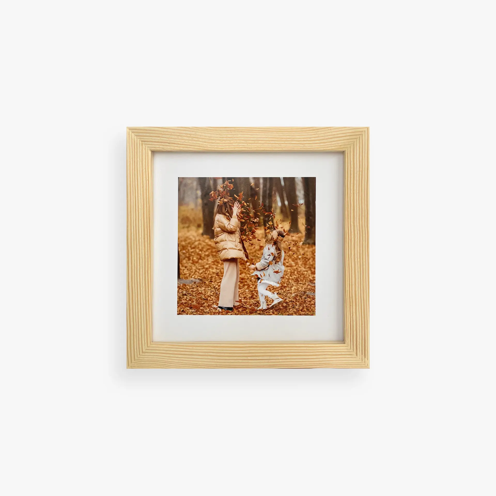 Doğal çam ağacı kullanarak hazırladığımız ince kare çerçevemiz, fotoğraflarınız için sade, şık ve zamansız bir sunum sağlar.