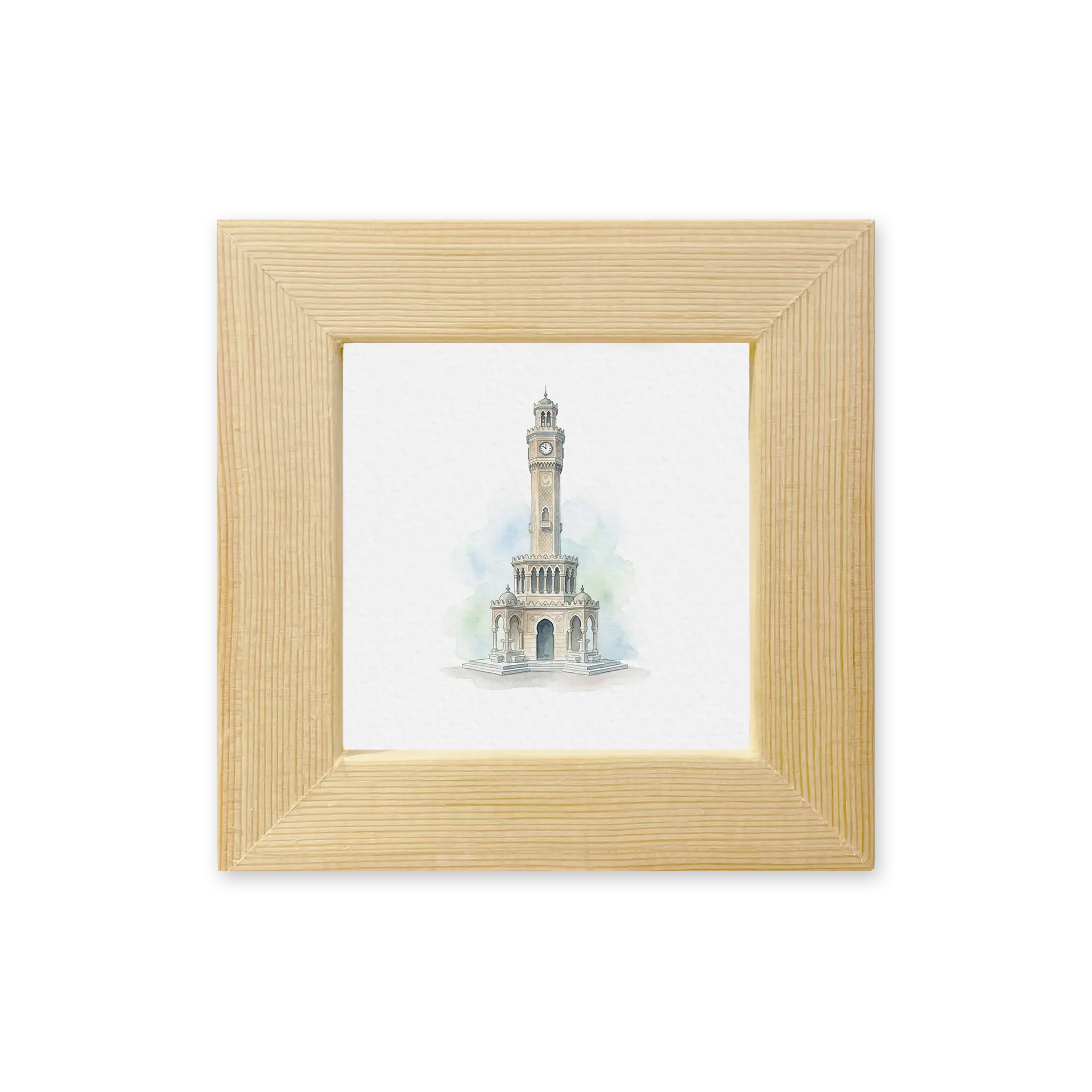 Çam ağacından üretilen 9,5 x 9,5cm ölçülerindeki İzmir Saat Kulesi çerçeveli magneti, özel tasarımıyla ortama sıcak dokunuş katar.
