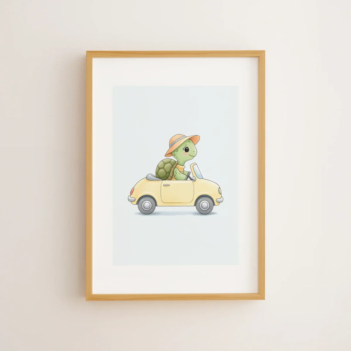 Kaplumbağa Rüyası, yavaşlığıyla bilinen bir canlıyı spor bir arabayla buluşturan keyifli bir maceradır. Çerçeveli tablo veya poster olarak çocuk odalarına mizah ve hayal gücünü taşır.
