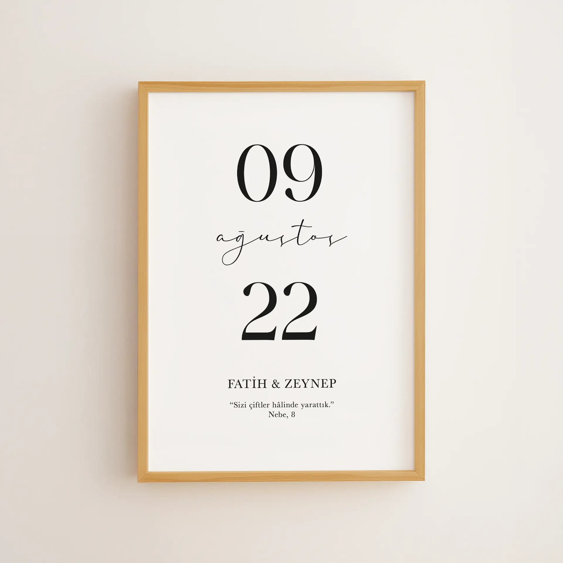Özel Gün, anlamlı tarihinizi, isimlerinizi ve dilediğiniz mesajı minimal bir tasarımla birleştirir. Hatıranızı duvarlarınıza taşır.
