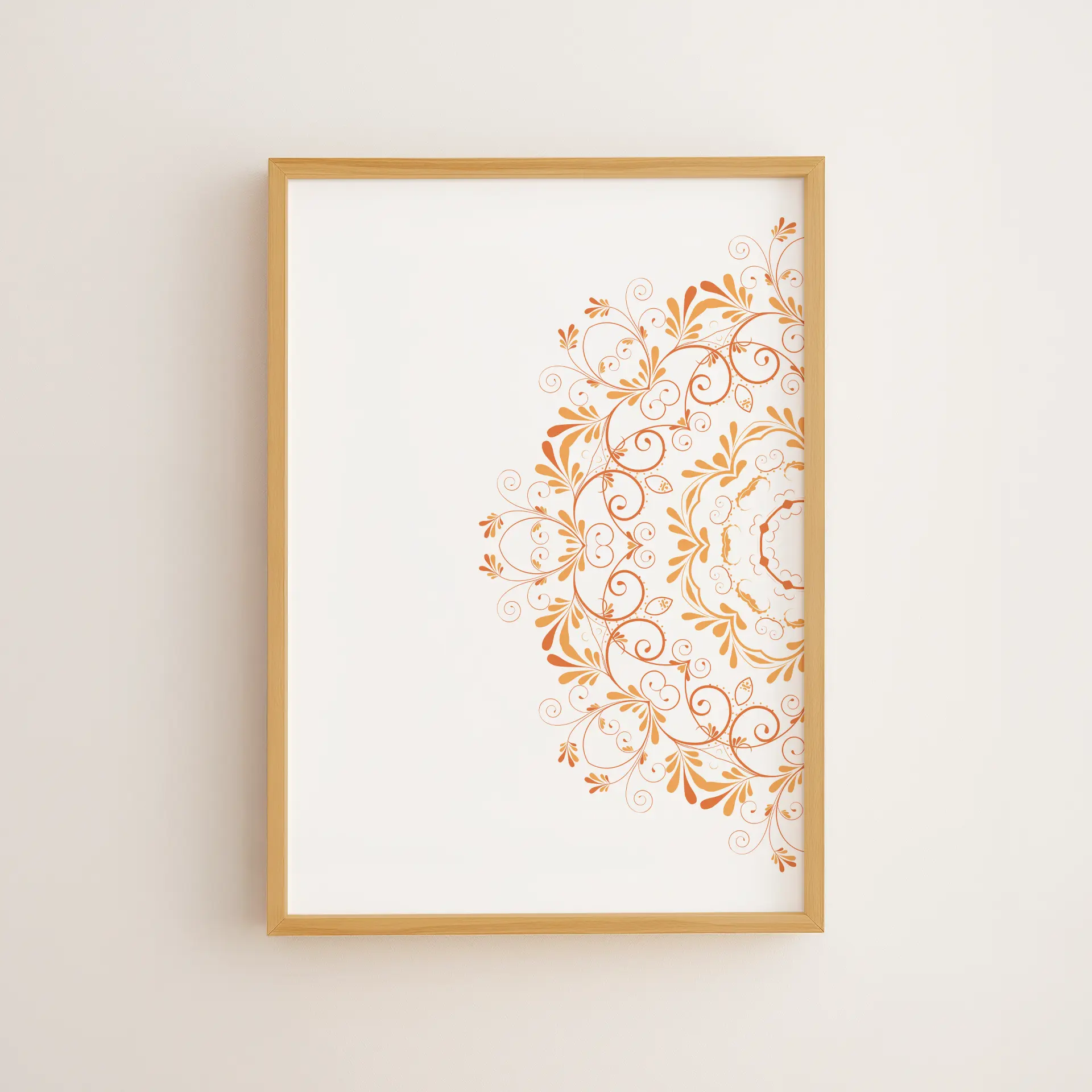 Yarım Motif 3, eksik gibi görünen ama aslında tamamlanmaya davet eden bir motif; çerçeveli tablo veya poster olarak duvarlarınıza eşlik eder.